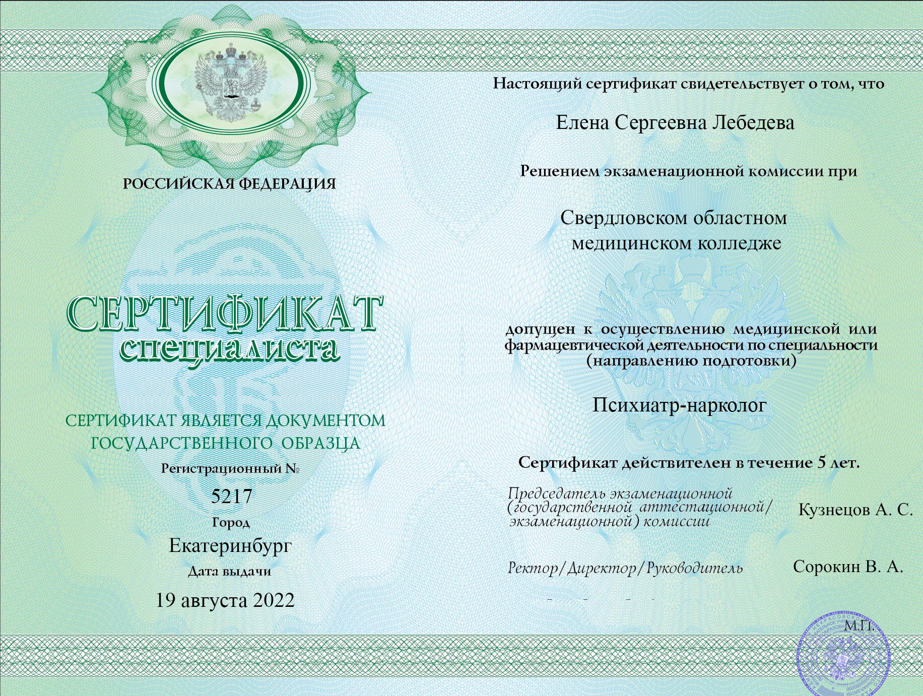 Елена Сергеевна Лебедева врач нарколог клиники доктора Стукаловой в Белогорске